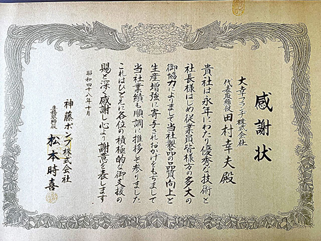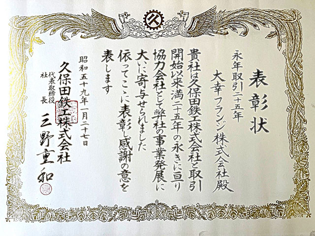 | 昭和26年5月 | 田村幸夫の個人経営として各種フランヂ製造販売 大幸フランヂ製作所を創立 |